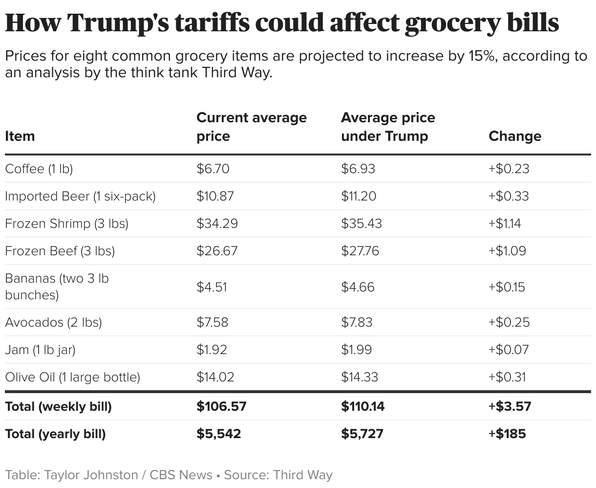 How do Trump's 2025 tariffs affect grocery prices? The 2025 tariffs have increased the cost of imported food products, with estimates showing price increases of 10-25% on items like coffee, beer, shrimp, and other imported goods. While companies are currently absorbing some of these costs, prices are expected to rise more significantly in 2026.